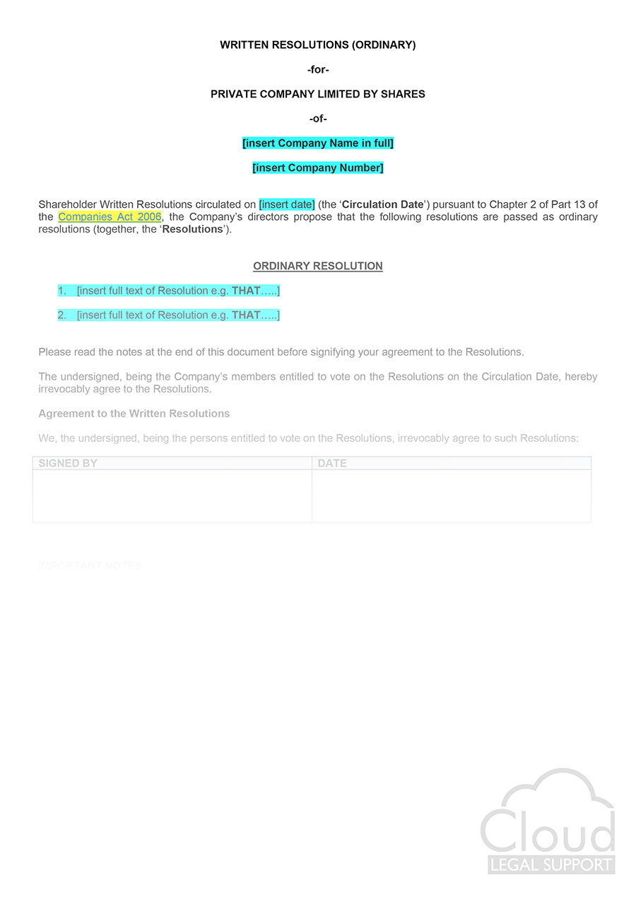 This document is used to pass ordinary resolutions which require 51% of shareholders votes to pass.