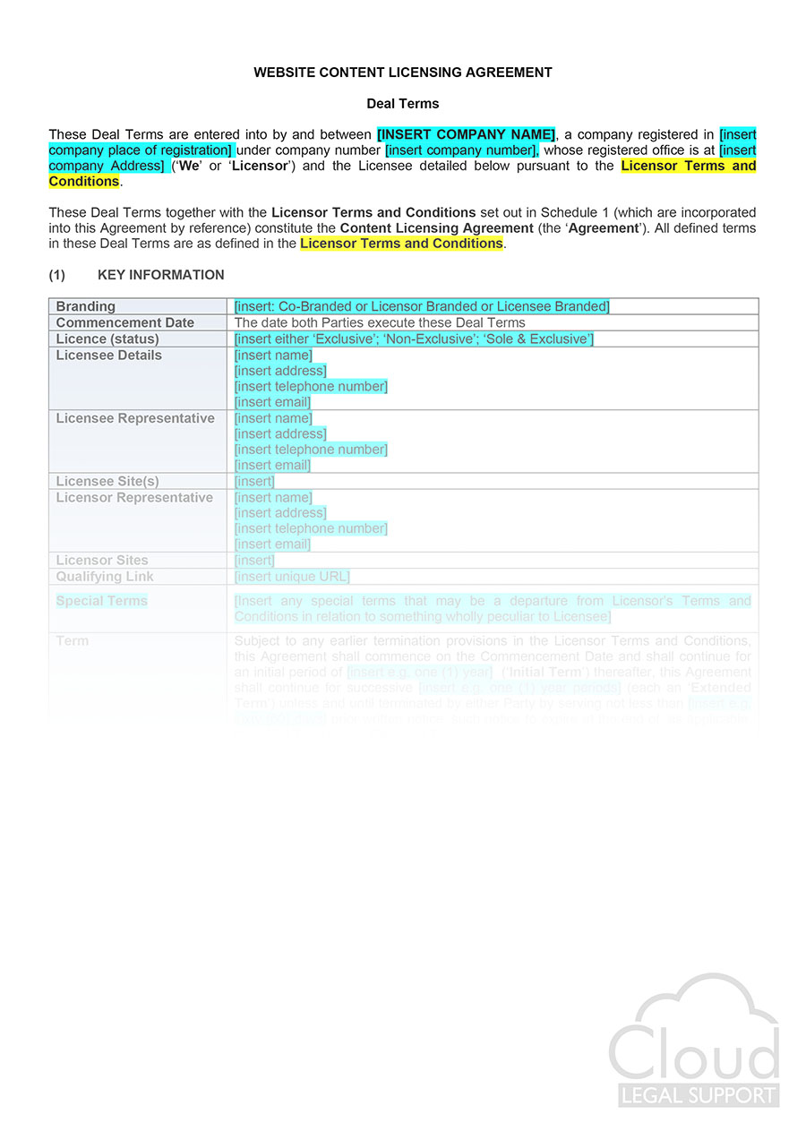 This document is used when an owner of a website (Business A) is agreeing that another business (Business B) can use content on their website belonging to Business A, for a fee. In law this is known as ‘content licensing’ (a licence is essentially another word for permission being granted to exercise certain licensed right in respect of something).